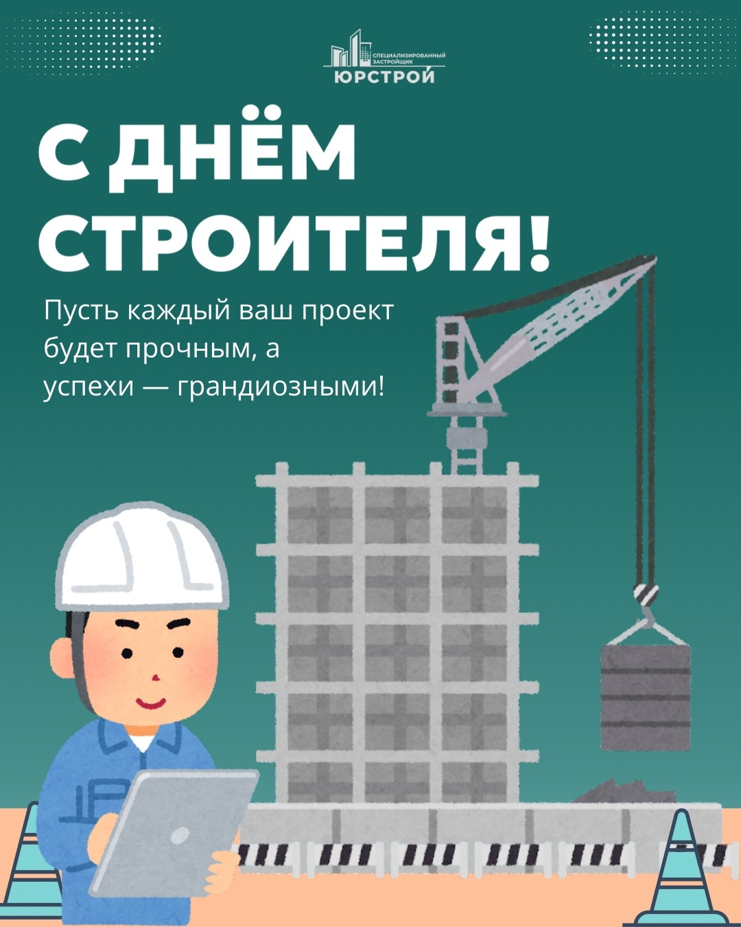 Команда ООО СЗ «ЮРСТРОЙ» и ООО «Медведевская ПМК» поздравляет всех С ДНЁМ СТРОИТЕЛЯ!